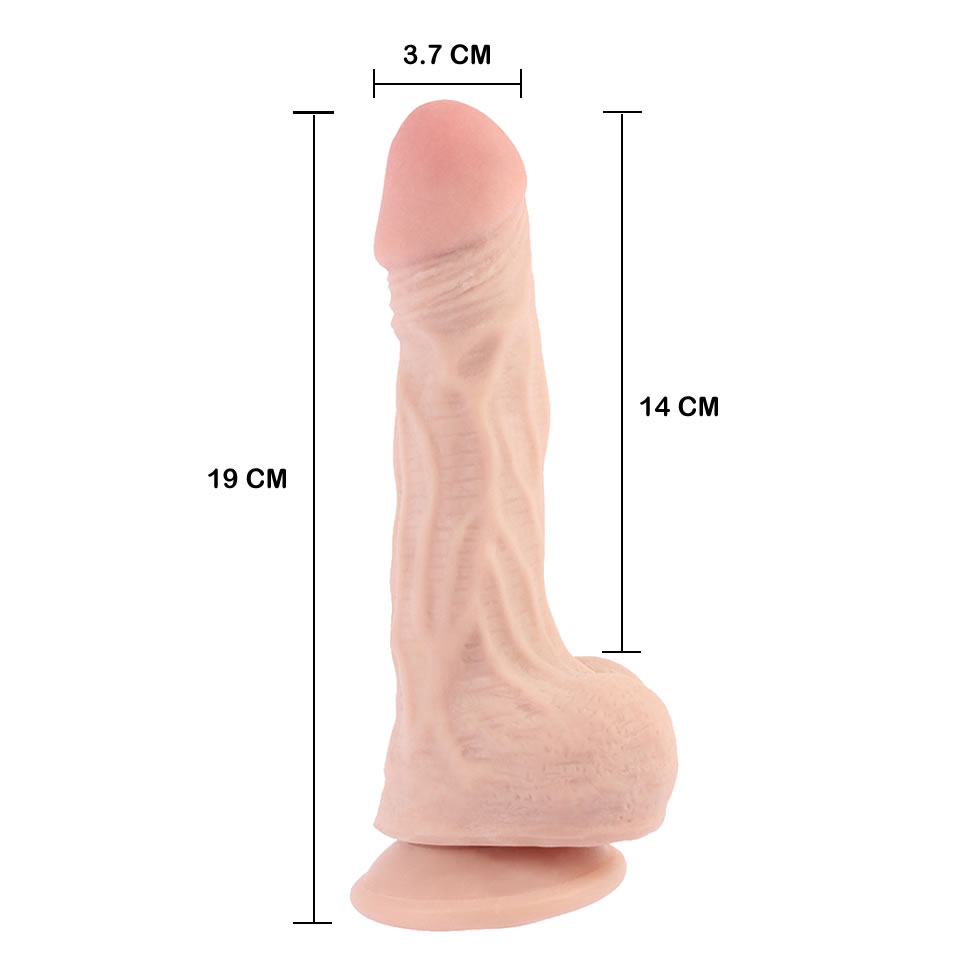 Fabricado con material realista de piel deslizante de doble capa para una sensación realista, con tecnología especial de doble densidad para simular la sensación de un pene erecto, puede disfrutar de una piel exterior suave y una interior satisfactoriamente firme.