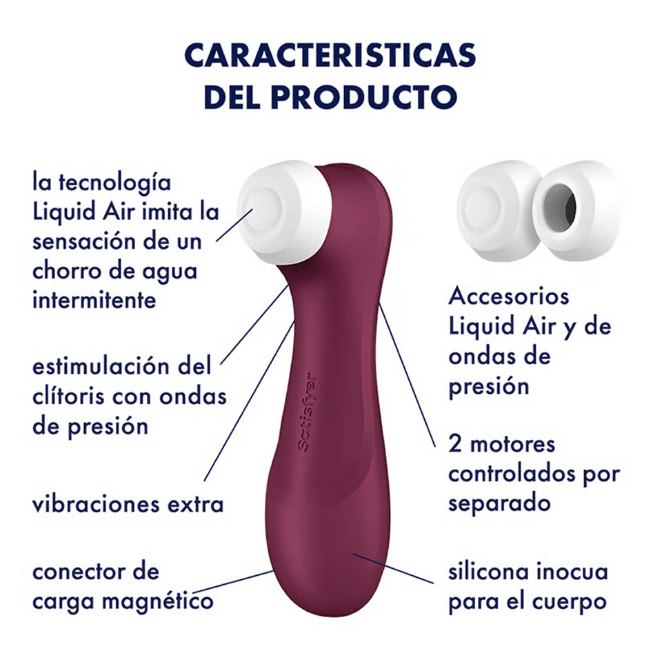 El Satisfyer Pro 2 Generation 3 es el dispositivo de bienestar sexual definitivo cuando se trata de estimulación del clítoris. El sucesor del popular Satisfyer Pro 2 es mucho más que un clásico vibrador de ondas de presión con tecnología Air Pulse. Disfruta de 12 programas de vibración con sus dos motores. Sin embargo, la impresionante revolución es nuestra innovadora tecnología Liquid Air: el capuchón adicional, con su fina y supersuave membrana de silicona, crea intensas ondas que imitan la sensual oleada del agua pulsante. El Pro 2 Generation 3 inunda tu cuerpo con estas ondas de placer, creando una sensación particularmente natural y permitiendo orgasmos nítidos como nunca antes habías experimentado. ¿Prefieres provocar tu clítoris con la familiar tecnología Air Pulse y completamente sin contacto? El Pro 2 Generation 3 viene con dos accesorios para que tengas las dos opciones. Sumérgete en 11 programas de ondas de presión, que puedes usar sin más o combinar con 5 velocidades de vibración y 7 patrones de vibración.